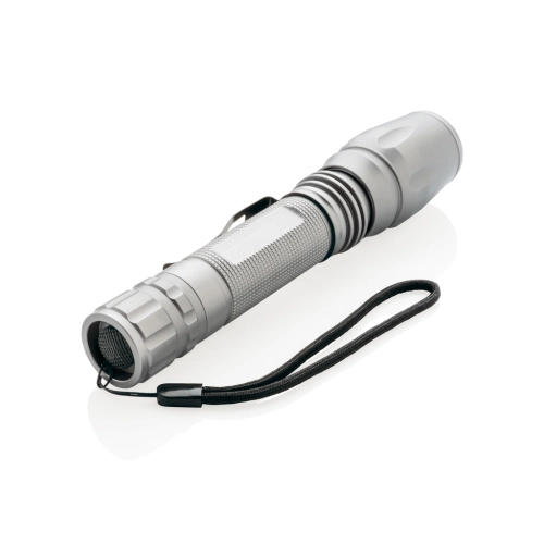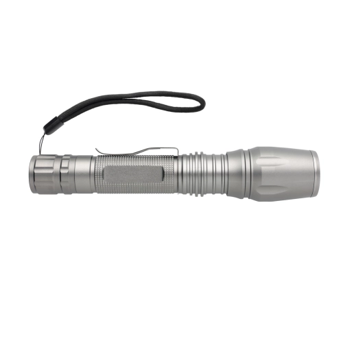 Super bright and tough 10W CREE led torch that can handle even the most difficult conditions. The durable aluminium torch is IPX 4 waterproof and shockproof up to 1 metre drop. The beam of the torch can be adjusted to focus or to light up a bigger area. With belt clip for carrying the torch. 250 lumen and working time of 6 hours. Includes batteries for direct use.
