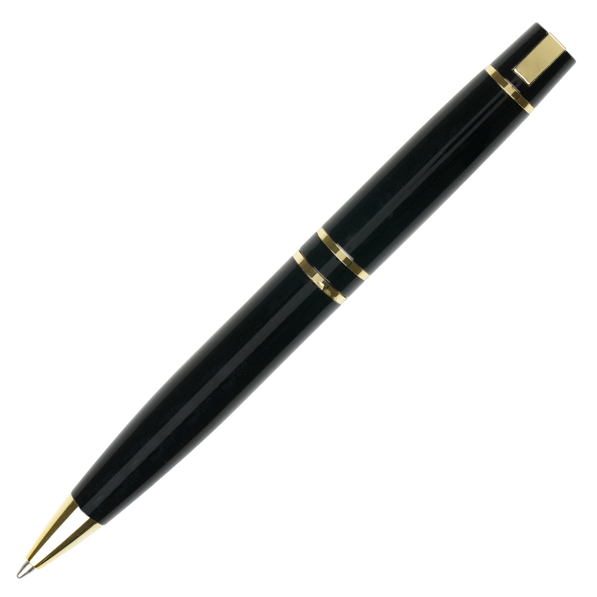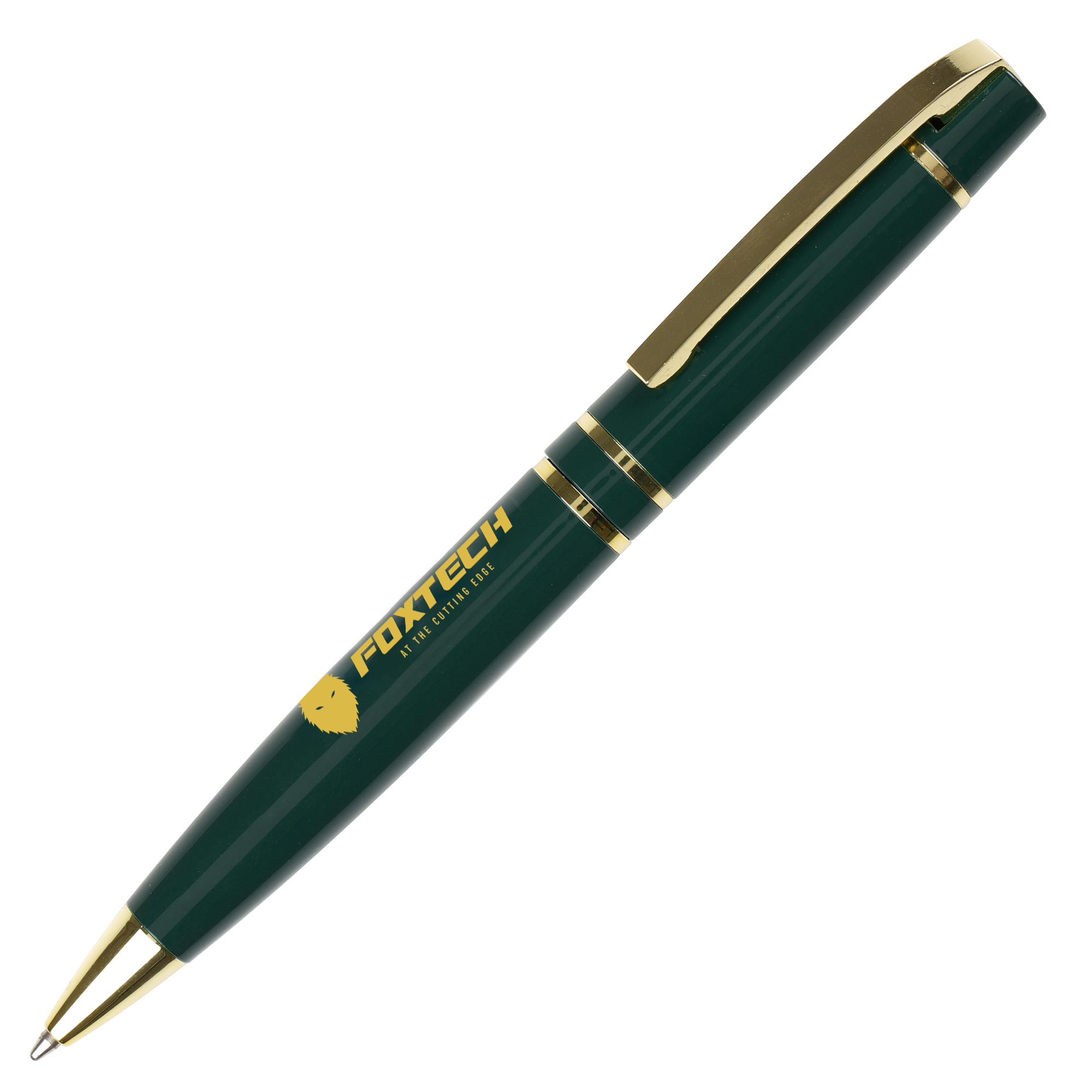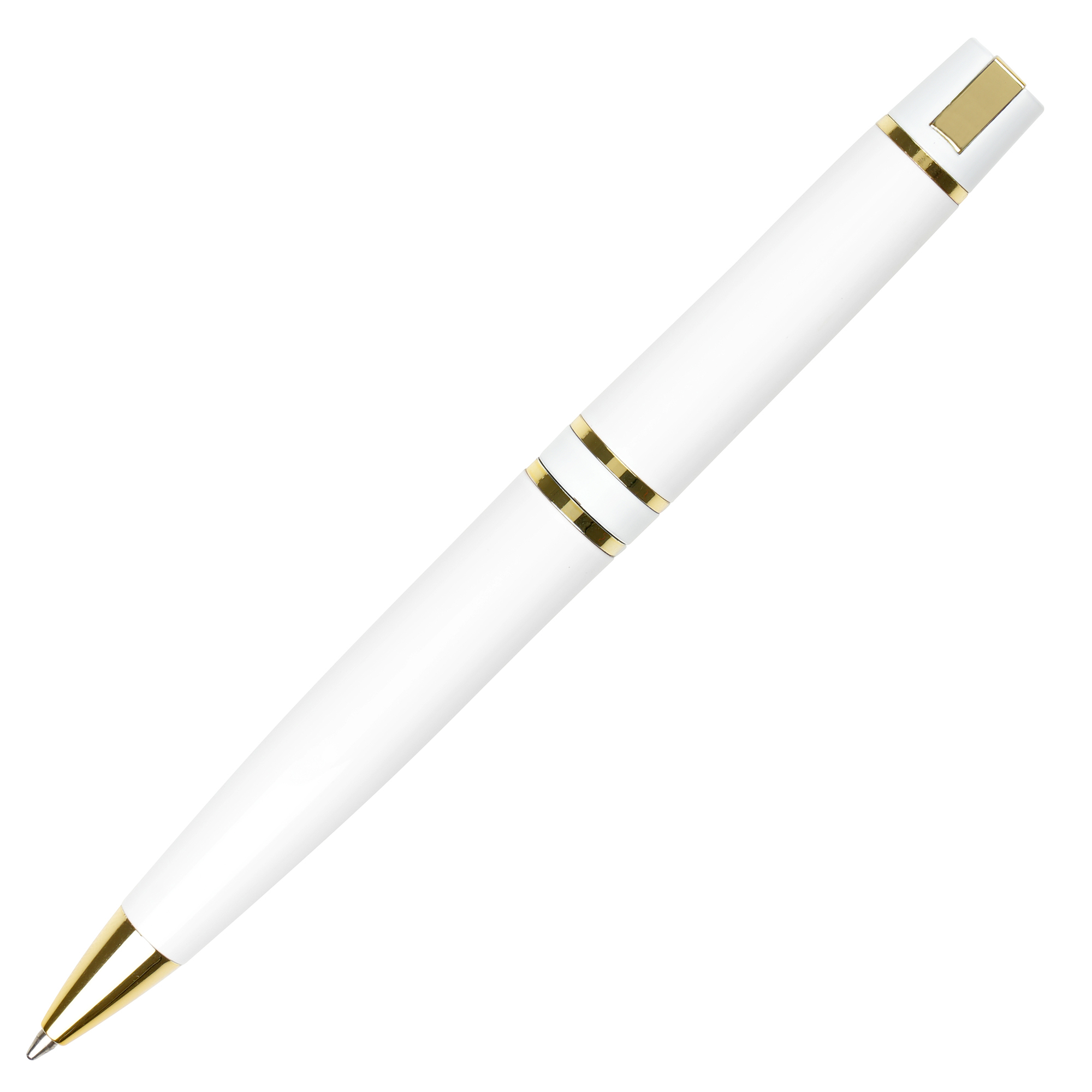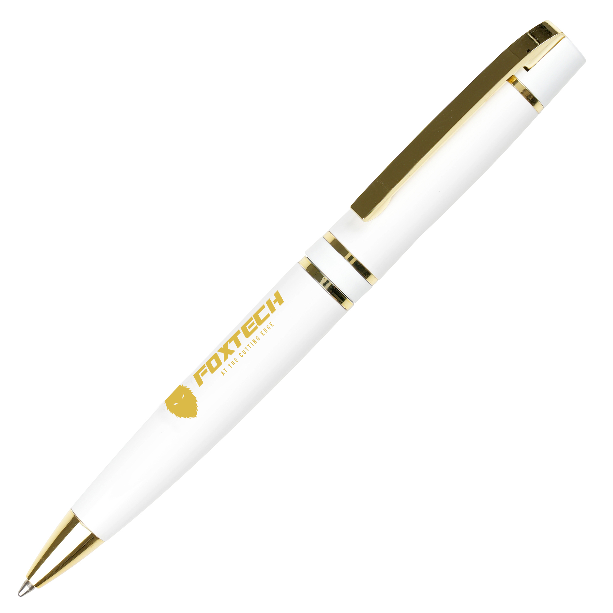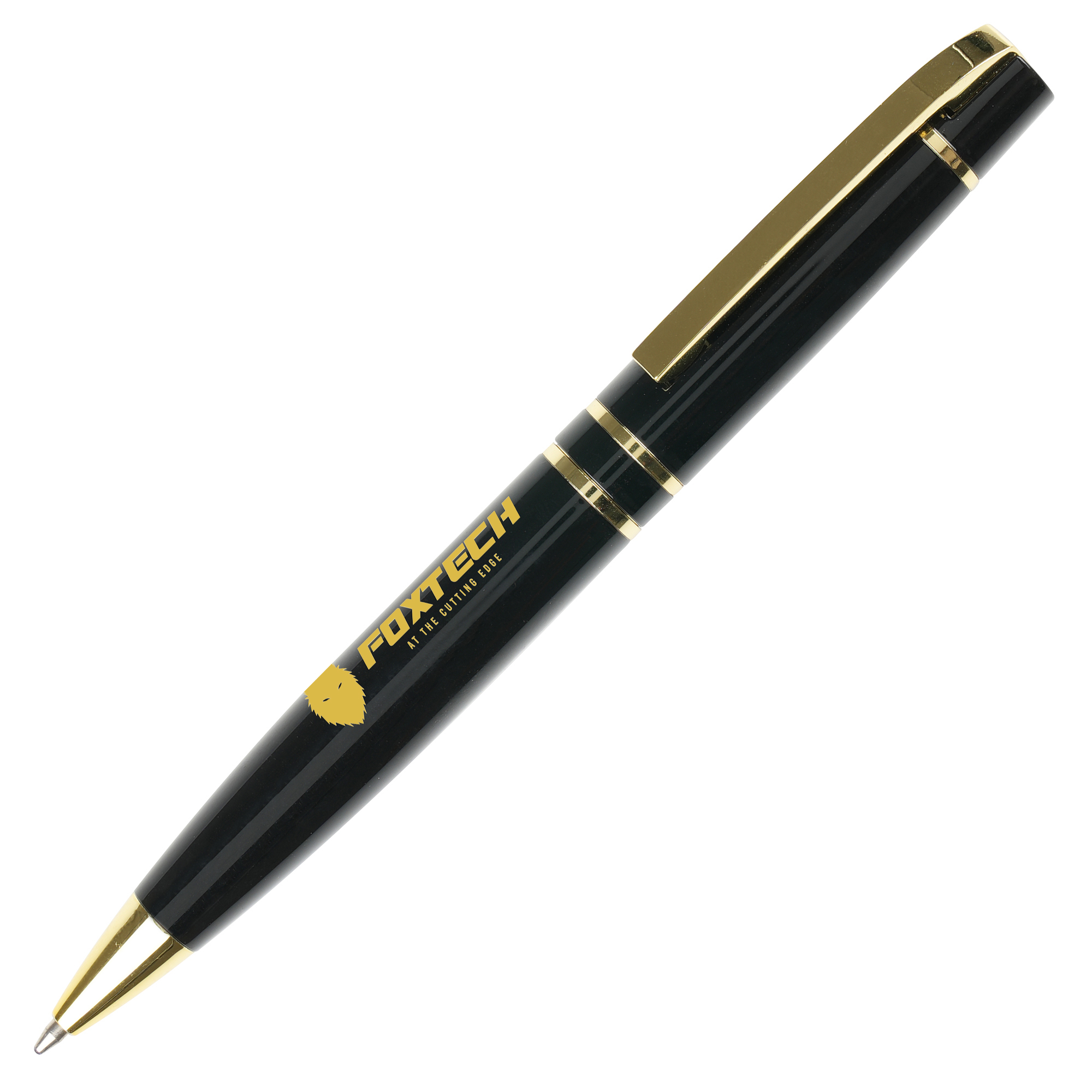 A robust yet elegant ball pen with a sublime twist action mechanism. The smooth gloss barrel and gold trim complete the high-end feel. Undercoated gold for a gold engrave finish.