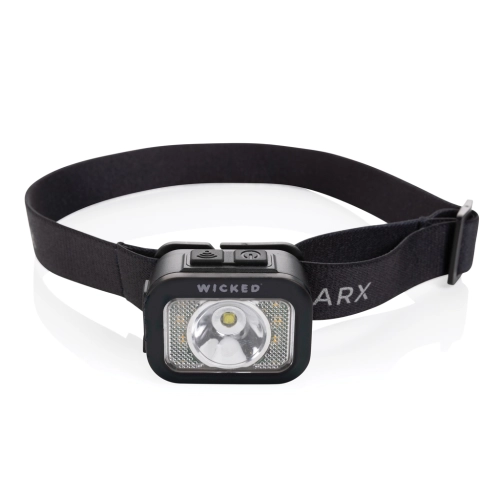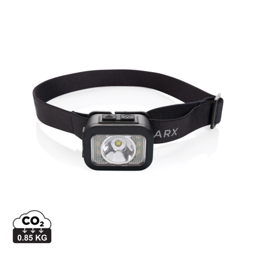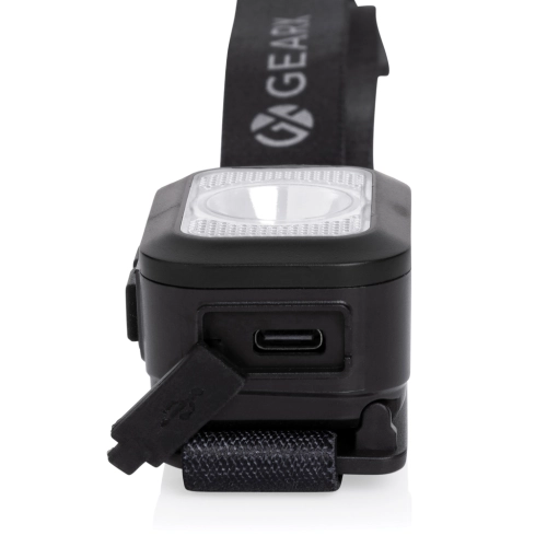 Heavy duty headtorch with integrated high power COB and LED light. The head torch can produce up to 250 lumen and has a beam distance of 70 metres. The casing of the head torch is is made out of RCS certified recycled ABS plastic. RCS (Recycled Claim Standard) is a standard to verify the recycled content of a product throughout the whole supply chain. Total recycled content: 23 % based on total item weight. The head torch is IPX4 waterproof and dust resistant. With adjustable headband to fit all sizes. The head torch has a 800 mAh rechargeable lithium battery that allows 3 hours of non-stop usage on one charge. With 6 light modes that include 100%-50% and SOS mode. Re-charging is easy via type C.